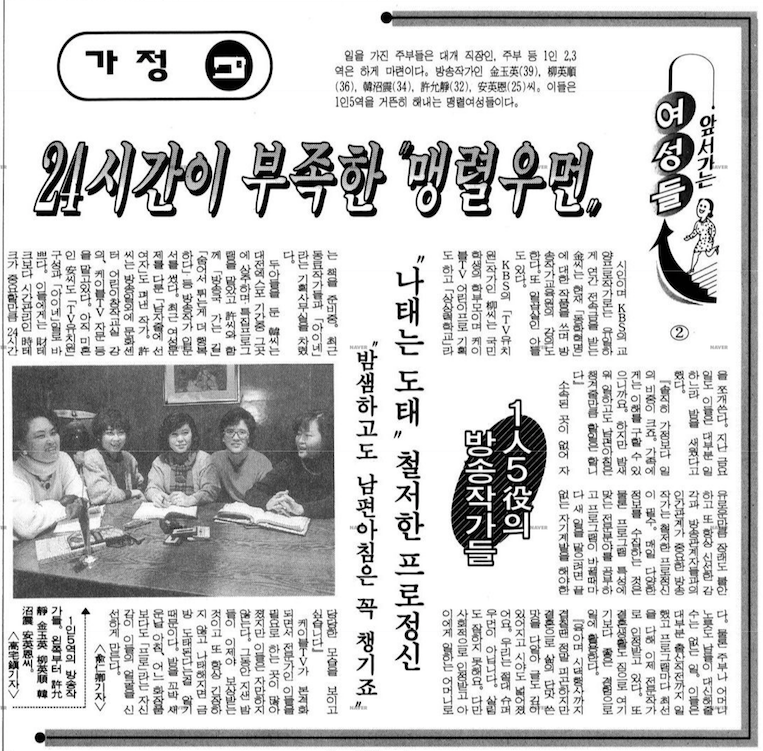 방송작가가 급격히 늘었던 90년대의 신문 기사를 보면 당시 방송작가들의 배경을 잘 알 수 있다.