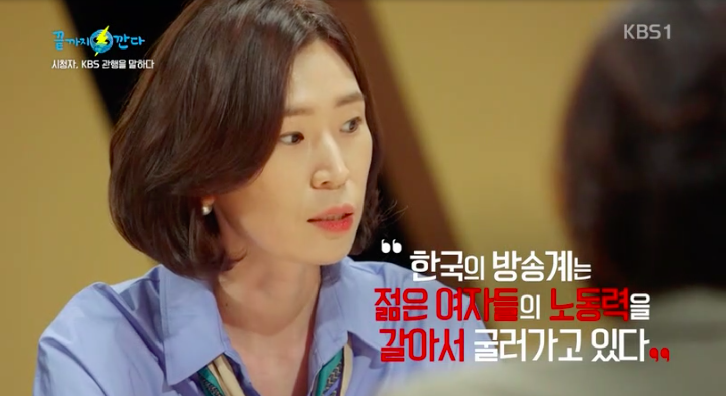 방송사에서 고용은 책임지지 않지만 실질적으로 방송 제작에 뒤따르는 많은 것들을 프리랜서인 작가가 책임지고 있는 실정이다. (예를 들어 프로그램에 문제가 생길 경우 프리랜서인 작가진이 교체된다든지.) 그렇기에 여성인 방송작가들은 더더욱 인정받고 자리를 지켜내기 위해 ‘24시간 맹렬우먼’으로 살아가도록 학습화된 것이다. 결국 방송사는 ‘방송작가는 여자가 하기 좋은 직업이다.‘ 라는 말로 후려치면서 방송작가인 젊은 여성들을 착취하고 굴려온 셈이다.