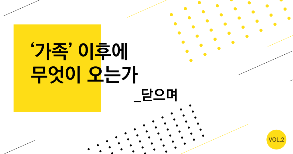 = 연주 : ‘가족’이라는 것은 늘 많은 생각을 하게 하잖아요. 그래서 『‘가족’ 이후에 무엇이 오는가』라는 기획을 봤을 때 Fwd에서는 어떤 논의를 할지 궁금했어요. 우선 그냥 크게 여쭤볼게요. 두 분이 생각하는 ‘가족’은 무엇이고 가족 이후에 무엇이 올까요?