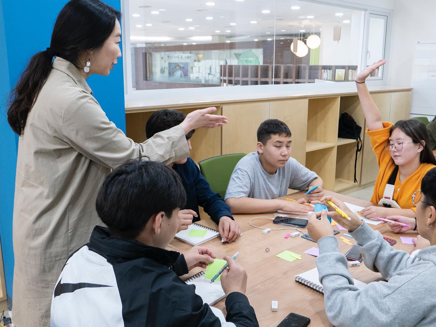 내가 좋아하는 것을 영상으로 표현할 때, 주제 선정에 있어 공간과 시간의 제약이 있어서 오늘 수업에서의 주제는 ’내가 있는 공간에서 제일 좋아하는 곳‘을 영상으로 나타내기로 하고, 공간 투어를 시작했습니다. 도서관 곳곳을 둘러보고 영상으로 표현하고 싶은 장소를 선정하는 것으로 기획 작업이 시작되었습니다. 교육을 하며 한국어를 못한다는 3-4명의 아이들을 더 관심 있게 관찰했는데 이야기를 나누다 보니 전체 학생 중 원활하게 한국어를 하는 친구는 3~4명뿐이고 겨우 소통이 가능하거나 소통이 어려운 친구들이 대부분이었습니다. 저는 앞선 시간에 진행되었던 수업을 머릿속으로 되짚어 보며 아이들이 과연 어느 정도 이해를 하며 이 수업에 참여했을지 의문이 들었습니다. 오늘 수업은 이미 마지막을 향해 가고 있었고, 테스트 촬영을 시작한 친구들도 있었습니다. 곧 본격적인 촬영과 편집을 앞두고 있었는데 아이들이 본인들이 원하는 이야기를 영상으로 표현해 낼 수 있을까 걱정이 되었습니다.