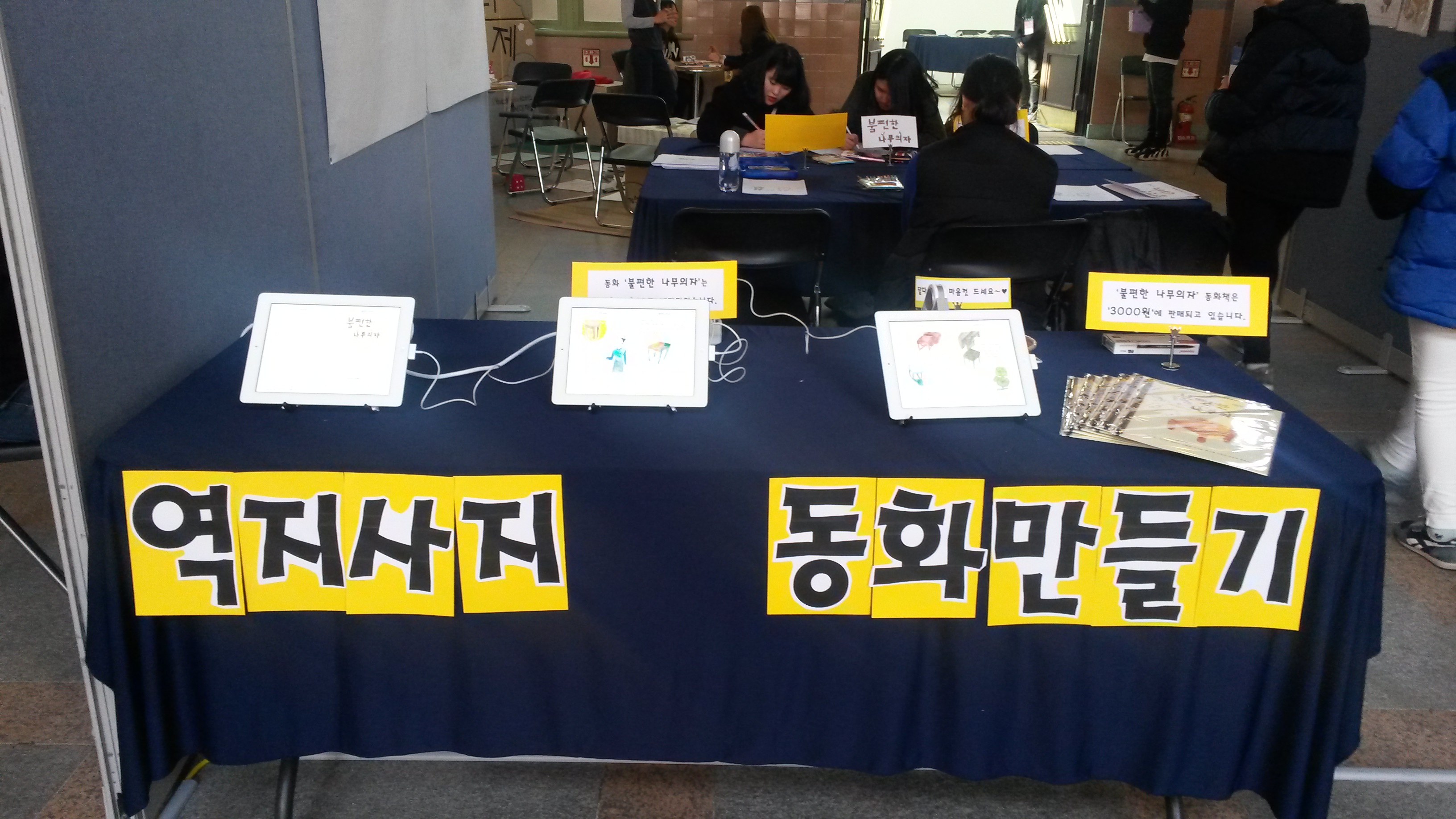 첫 교육으로 저는 동료 교육자와 함께 <역지사지 동화 만들기>라는 프로그램을 개설하여 아이들과 함께 동화책을 만들기로 했습니다. 이 프로젝트는 2014년 8월부터 10월까지 15세에서 19세까지의 청소년들을 대상으로 7회차에 걸쳐 진행되었습니다. 다양한 공간을 다니며 이야기의 소재를 찾고 직접 그림을 그리고, 동화를 쓰는 과정으로, 교육을 통해 완성된 ‘불편한 나무의자’라는 책은 유스보이스 컨퍼런스에서 대중들에게 공개되기도 했습니다. 유스보이스 교육자로서 두 번째 프로그램인 <노(No)답 나들이>는 2016년 여름과 가을에 8회차에 걸쳐 청소년들과 함께 진행되었는데 평소 자신이 느끼는 감정을 사진으로 표현하는 교육이었습니다. 여행길에 만나는 낯선 장소의 풍경을 일회용 카메라로 촬영하여 자신을 표현하고, 인화된 사진에 코멘트를 적어서 전시하는 내용이었습니다. 유스보이스의 지원으로 저는 현실적인 부담을 내려놓고 교육에 몰입할 수 있었습니다.