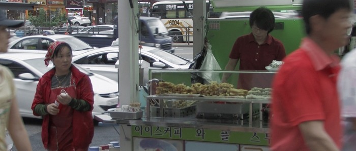 이강길 감독님을 생각하면 떠오르는 이미지다. 6개월 동안 거의 매일 보다시피 한 감독님이 새까만 옷 이외의 색깔 옷을 입었었던가? 기억에 없다. 감독님이 찍던 내 노점박스는 밝은 연두색. 네모나고 연두연두한 노점박스의 대각선 옆으로 약간 빗겨나 새까맣게 서있던 감독님과 감독님의 카메라. 2012년 가을부터 금천구 시흥동 홈플러스 건너편에서 쉽게 볼 수 있던 모습이다.