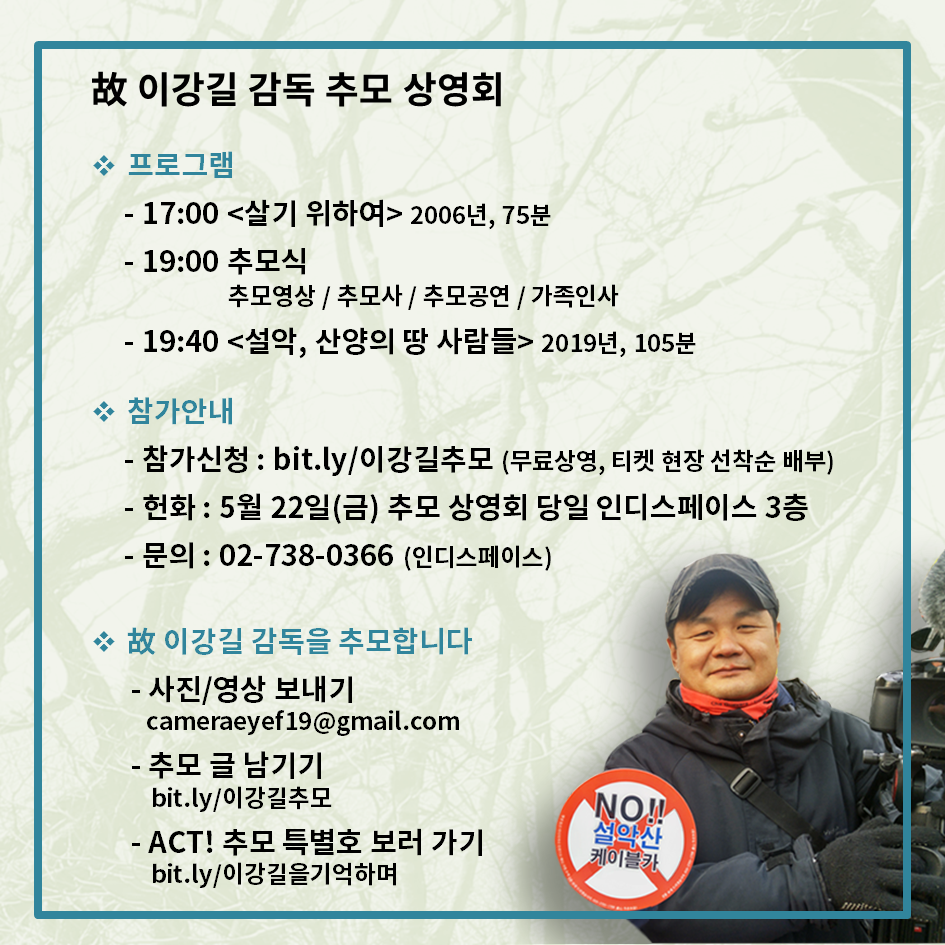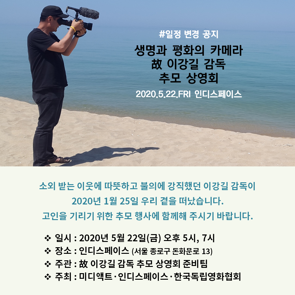 주관 故 이강길 감독 추모 상영회 준비팀 주최 미디액트, 인디스페이스, 한국독립영화협회
