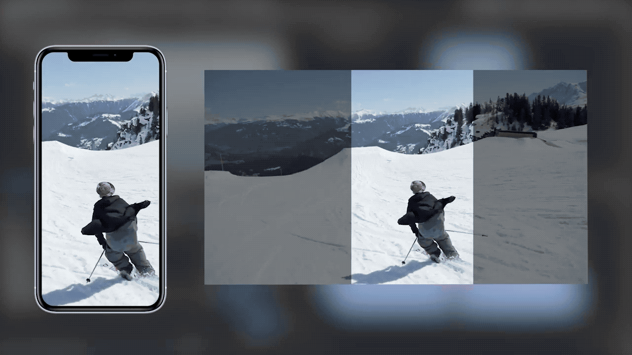 360 카메라는 두 개 이상의 렌즈로 카메라 주변의 모든 풍경을 기록한다. 이를 2D 모드로 전환해서 특정 지점을 선택하면 동시에 여러 대의 카메라로 촬영을 한 것처럼 보이거나 일반적인 카메라 움직임으로 담을 수 없는 영상을 만들 수 있다.