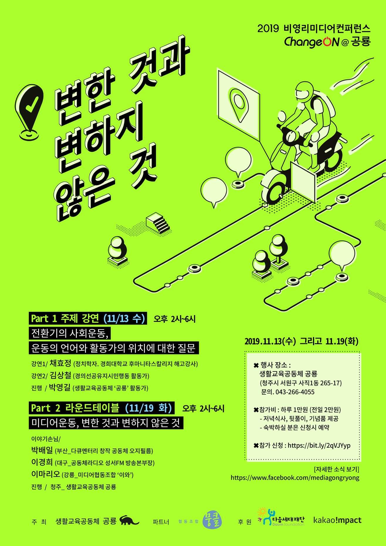 ▲ 2019년 비영리미디어컨퍼런스 ‘체인지온 @ 공룡’ “변한 것과 변하지 않은 것” 메인 포스터