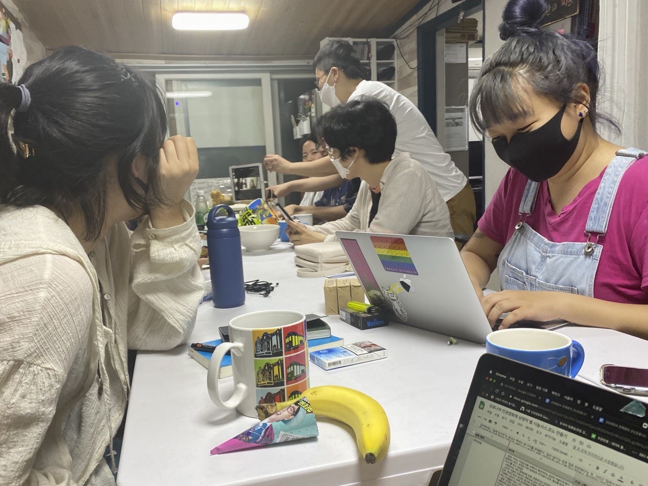 2주간의 코로나19 인권영화제: 누구도 남겨두지 않는다를 무사히 마치고 난 후에는 서울인권영화제의 모든 활동가들이 모여 두 번의 전체평가회의를 가졌다. 코로나19 인권영화제를 준비하며 어려웠던 지점들과 아쉽거나 부족했던 지점들을 이야기하며 자연스럽게 온라인으로 연대의 현장이 가능한지를 생각하게 되었다.