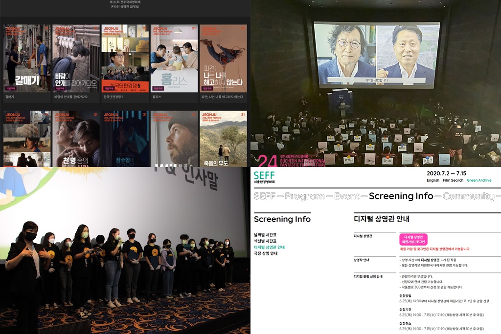 코로나 19로 인해 생활과 문화는 작지만 깊게 변화했다. 특히 영화산업에 있어선 극장의 경계를 넘어선 다양한 형태의 ‘관람’과 ‘사유’가 이어져왔다. 2020년 국내에서 열린 영화제 중 다수는 연기 혹은 온, 오프라인을 통해 진행되었다. 특히 오프라인 상영에 있어선 거리두기 및 방역당국의 지침을 지키기 위해 좌석을 비롯한 행사들이 전면 축소되었고, 작년에 비해 확연히 관객들이 줄어든 상태에서 진행했다. 여기서 온라인 상영을 위해 국내는 WAVVE, 왓챠를 비롯한 OTT 플랫폼과의 제휴를 선택했다. 이 과정에서 가격을 비롯한 서비스와 관람에 대한 의견이 분분해졌지만, 급증하는 감염자로 인해 많은 것이 멈춰선 해외를 비교하면 이 또한 다행이였다.