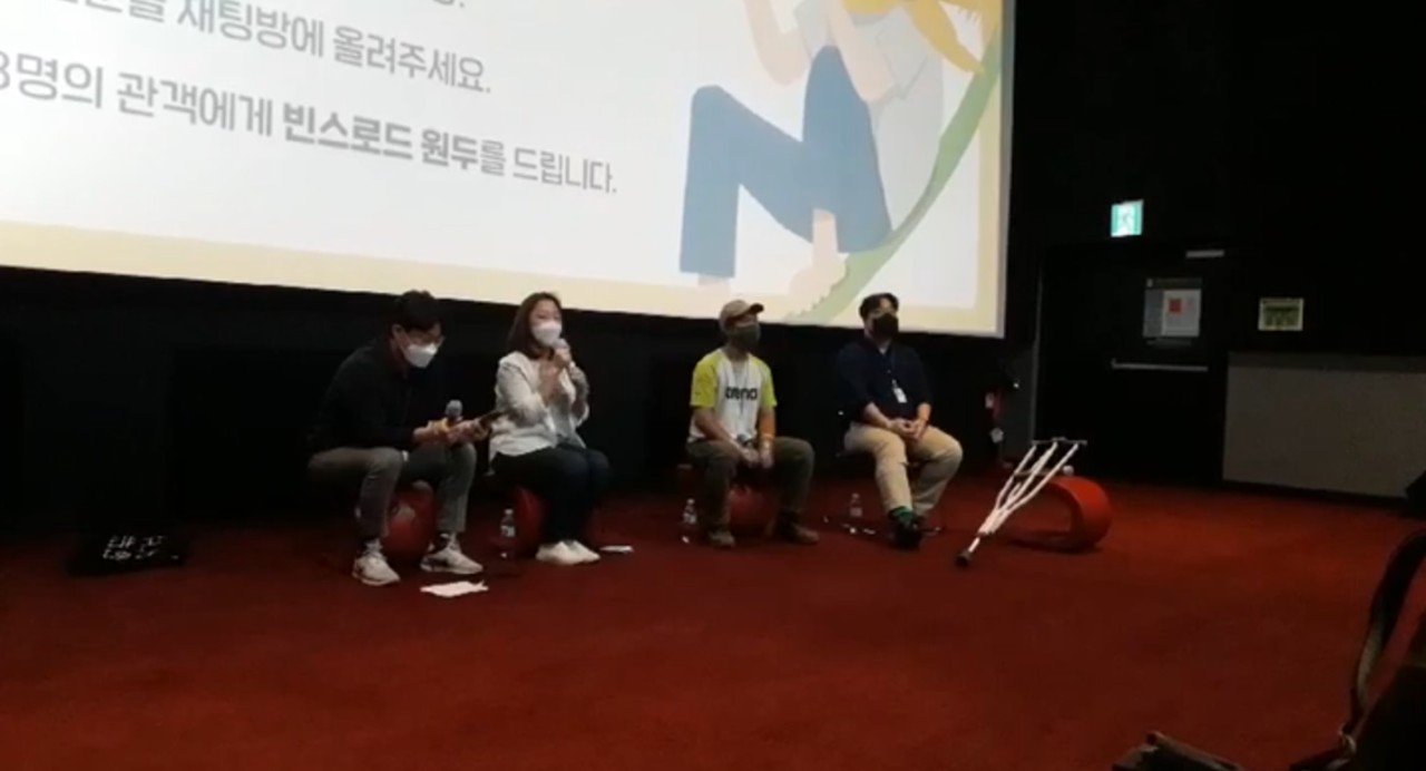 하지만, 역시 GV 특유의 ‘관객과 소통한다’는 느낌은 옅어질 수밖에 없었다. 해당 질문을 어떤 관객이 던졌는지 알 수 없었고, 모두 마스크를 착용한 탓에 관객들의 표정을 읽을 수도 없었다. 때문에 질문에 나름의 답을 하긴 했지만, 과연 적절한 대답이었을지 의문을 가지고 스스로를 계속해서 곱씹어보게 되었다. 물론 나 또한 마스크를 착용하고 있었던지라, 관객들 역시 내 얼굴에서 표정이나 감정을 읽어내지 못했기에 모종의 답답함을 느꼈을지도 모르겠다. 얼굴의 3분의 2를 가리고 이야기를 나눈다는 것이, 이런 거리감을 형성할 수 있음을 새로이 느꼈다.