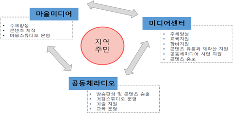 공동체미디어의 세 주체인 마을미디어, 공동체라디오방송, 미디어센터가 향후 지역의 공공적 미디어 생산과 유통 소비 그리고 미디어리터러시 교육의 중요한 주체로서 긴밀한 협력이 이루어져야 할 것이다.