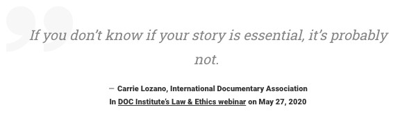 오늘 아침, 코로나 일일 확진자수가 1000명을 넘었다는 뉴스를 전해 들었다. 모두에게 그러하듯이, 다큐멘터리 제작자에게도 현 상황이 결코 녹록치는 않을 것이다. 다큐멘터리에 허용되는 제작 반경은 줄어들고, 받아들여야하는 변화와 지켜야할 수칙은 늘어났다. 우여곡절의 상황을 헤쳐 나가고 있을 다큐멘터리 제작자분들을 위해, 이 웹사이트에 적힌 하나의 문구를 소개드리면서 글을 마무리할까 한다. 다큐멘터리에 종사하는 모든 분들이 코로나19로부터 자신을, 자신의 작품을, 자신의 공동체를 지켜내면서 건강하게 제작 활동을 이어나가기를 소망한다.