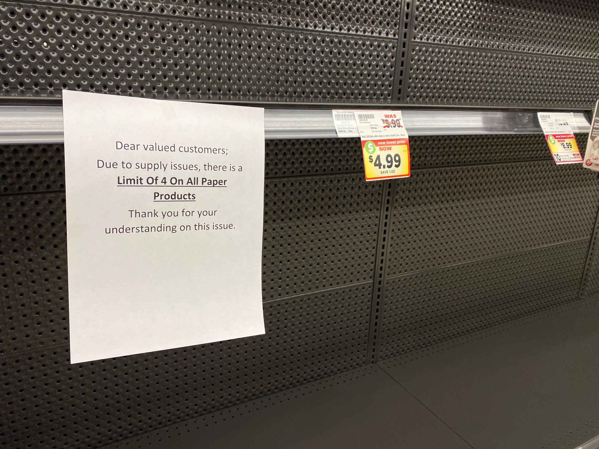 ▲ 캐나다 소도시의 COVID19 대유행은 텅 빈 화장지, 키친 타올, 베이컨, 밀가루 매대로 체감되기 시작했다.
