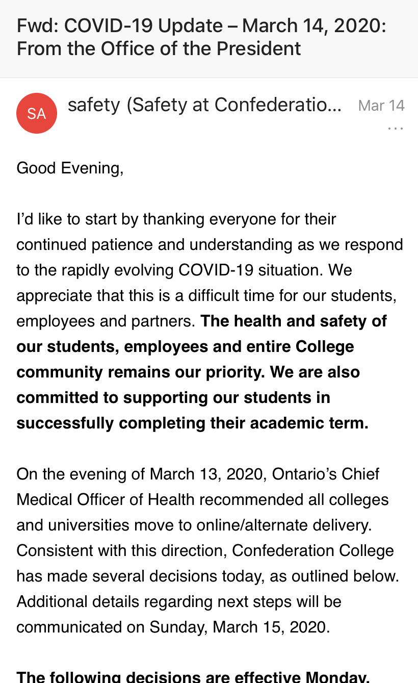 이 와중에 상당히 인상 깊었던 점은, 정부의 대책 수립과 후속 조치들이 매우 신속하게 이루어졌다는 것이다. 평소에 캐나다의 행정 처리는 엄청나게 느리다. 모든 것이 빨리빨리 이루어지는 한국에 익숙해져 있는 사람들은 속이 터질 정도. 하지만, 재난 상황에서의 대처는 매우 기민했다. 총리가 매일 TV 브리핑을 통해 현재의 상황과 대책들에 대해서 발표했고, 각 주 정부 역시 매일 상황을 업데이트하고 각종 지원정책들을 내놓다니, 이럴 땐 참 부지런하구나, 싶었다.