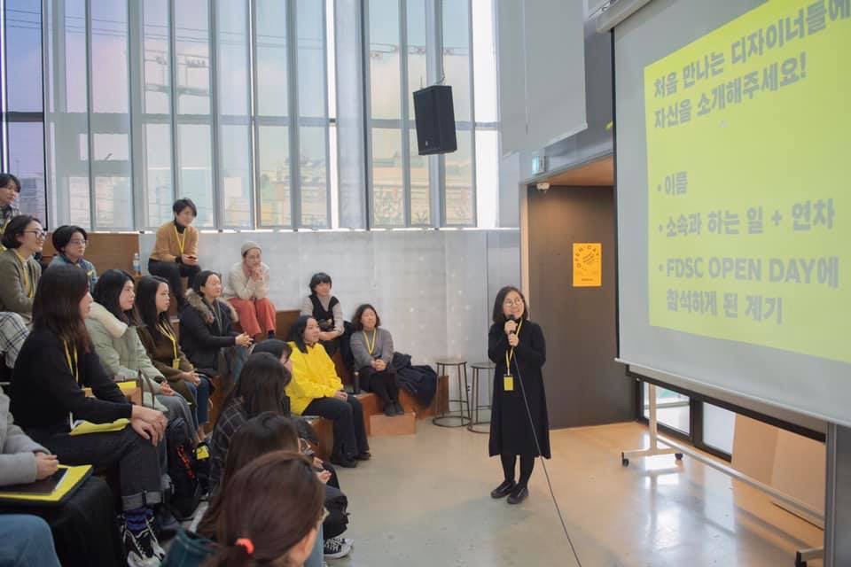 - 김소미: FDSC의 처음은 2018년에 신인아 디자이너(스튜디오 ‘오늘의 풍경’ 운영)의 제안으로 시작이 되었어요. 여성 디자이너들이 모여서 공부도 하고 서로를 도와주는 모임을 만드는데 관심 있는 분을 찾는다고 SNS에 올리셔서, 그때, 저랑 양민영 디자이너 우유니 디자이너 이렇게 4명이 모였습니다. 처음에는 비슷한 연차의 동료 디자이너 너덧 명이 모인 작은 스터디 모임 같은 걸 생각했는데 이런 모임에 대한 갈증이 사람들에게 아주 많았는지 모임을 시작하자마자 열렬한 관심과 지원이 있었습니다. (‘밀리언아카이브’ 정은솔 디자이너의 공간지원 등) 그렇게 생각보다 더 큰 공간에서 더 많은 사람을 모으게 되었습니다. 그때그때 상황에 맞게 단체 성격이 변해오며 무료 회원제였다가 유료화를 거쳐 현재로 자연스럽게 이어졌습니다.