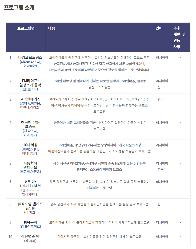 - 광주 고려인 마을 공동체라디오 <고려FM> 이믿음PD 인터뷰