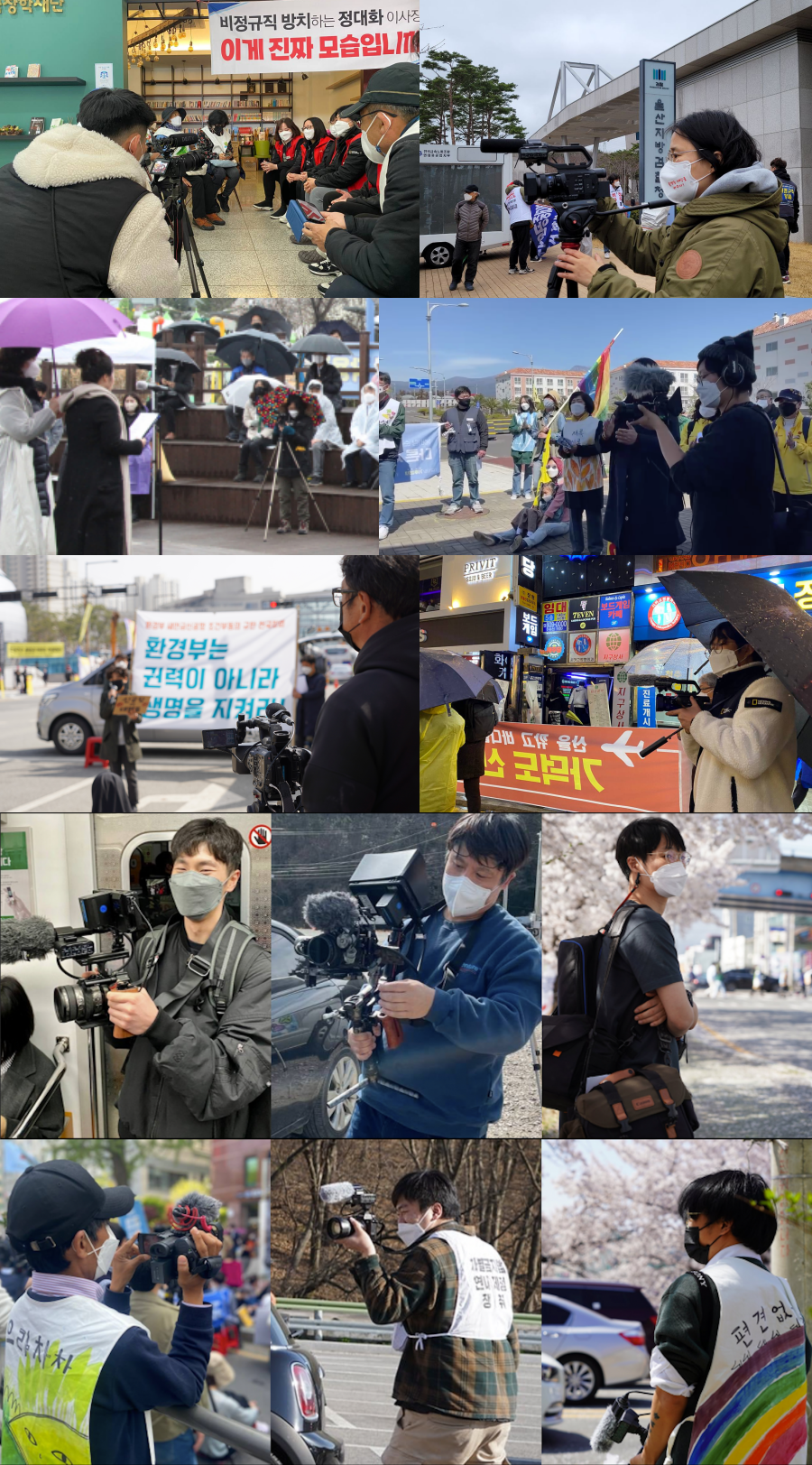 2022년 상반기, 대선과 지방선거라는 큰 선거가 끝났습니다. 뉴스는 연일 몇몇 후보와 각종 선거 관련 이슈를 비추기 바빴습니다. 하지만 선거 전에도 후에도 여전히 자신의 목소리를 내며 거리에 있는 사람들도 있습니다. 오랜만에 전국 각지의 미디어 활동가들이 모여서 이러한 목소리를 담기 위한 프로젝트를 진행했습니다. 특히 이번 프로젝트는 코로나19로 인해 한동안 함께 모이지 못했기에 더욱 각별하게 느껴집니다. 함께 진행한 설해님이 프로젝트를 소개하는 글을 보내주었습니다.