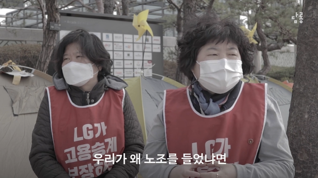 람지) 묵자가 기획하고 제가 서브 기획한 <LG 트윈타워 청소노동자> 영상이 있거든요. 저도 모르게 노동자의 얼굴을 중년 남성으로 생각하고 있었다는 걸 많이 깨달았어요. 보통 노조에서 파업하고 행진한다 그러면 조끼 입은 아저씨들, 민주노총 아저씨들 생각을 많이 했거든요. 그분들은 본인들이 하는 노동에 자부심을 갖고 계시고 흔히 사람들이 청소 노동을 그냥 아무나 할 수 있는 거 아니냐, 숙련직이 아니지 않냐 무시하는데 그분들은 구체적으로 내가 점심시간 30분 만에 이 바닥을 얼마나 깨끗하게 잘 닦을 수 있는지와 같이 내가 이만큼 할 수 있다는 것에 자부심이 있으셨어요. 또 아이를 부양할 수 있다는 내 가장으로서의 능력이 자랑스럽다는 말을 하신 분도 계셨어요. 저도 어떠한 편견이 있었고 그걸 깨부술 수 있는 사람을 만났다는 계기가 있어서 그분이 기억에 남아요.