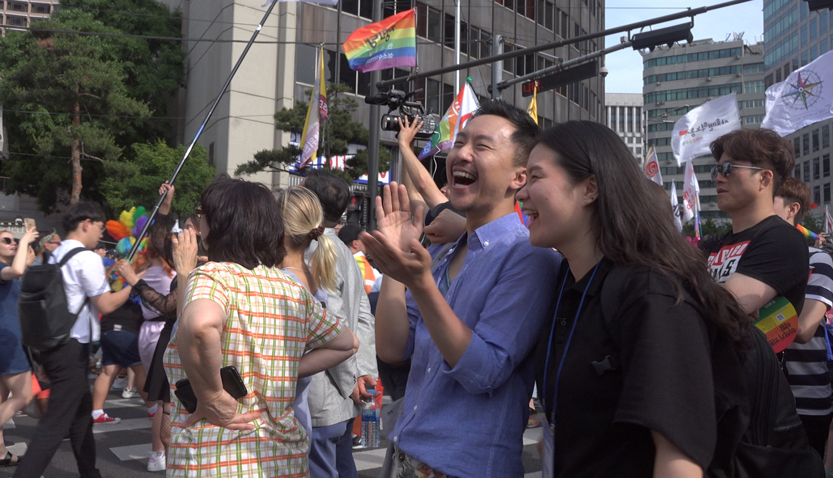 강원과 아현은 카메라를 의식한 채로 대화를 나누어 왔다. 강원의 이야기는 한 공간에 두 명이 함께 있는 이미지를 지나, “이제 시작되나요?” 같은 말들을 지나, 인터뷰 형식으로 제시된다. 카메라 앞에 서는 일은 타인 앞에 서는 일과 비슷하다. 타인 앞에서 우리는 자신을 얼마나 내어 보일 수 있을까 고민하는 것처럼, 우리는 카메라 앞에서 조금의 연기를 하기 마련이다. 하지만 카메라에는 연기하고 의도하지 않은 순간들이 담긴다. 카메라가 담아내고 있던 강원과 세계와의 거리감이 강원의 입을 통해 제시된 이후, 아현의 카메라는 더 이상 무해한 도구가 될 수 없다. 자신에 대한 통제력을 잃어 간다고 느끼는 강원은 자신의 상태를 어디까지, 왜 카메라와 당신에게 보여주어야 하는지 묻는다. 여전히 퀴어의 존재를 부정하는 세계의 풍경 속에서 카메라 또한 온전한 나를 보여줄 수 없는, 정상성을 체화한 두려운 존재가 된다. 각자가 세계의 압력에 답하는 결정적인 순간을 통해, 강원의 경우 당당히 퀴어축제의 무대에 오르는 것, 아현의 경우 해피엔딩을 가진 다큐멘터리의 완결을 통해, 둘을 온전한 존재로 증명하려던 아현의 시도는 실패한다. 하지만 우정의 기록은 여기에 남아있다. 강원은 세계로부터 온전한 위치를 부여받지 못했지만. 아현의 풍경 속에서 분명히 존재하고 있다. 그 사실을 알리고 싶은 우정의 마음에서 출발한 아현의 카메라는 그의 의도처럼 강원과 아현을 완성된 사람으로 세계의 풍경 속에 기입하지 못하지만, 강원의 옆에서 함께 실패의 순간을 겪으며 퀴어가 경험하는 세계와의 거리감을 담은 기록이 된다.