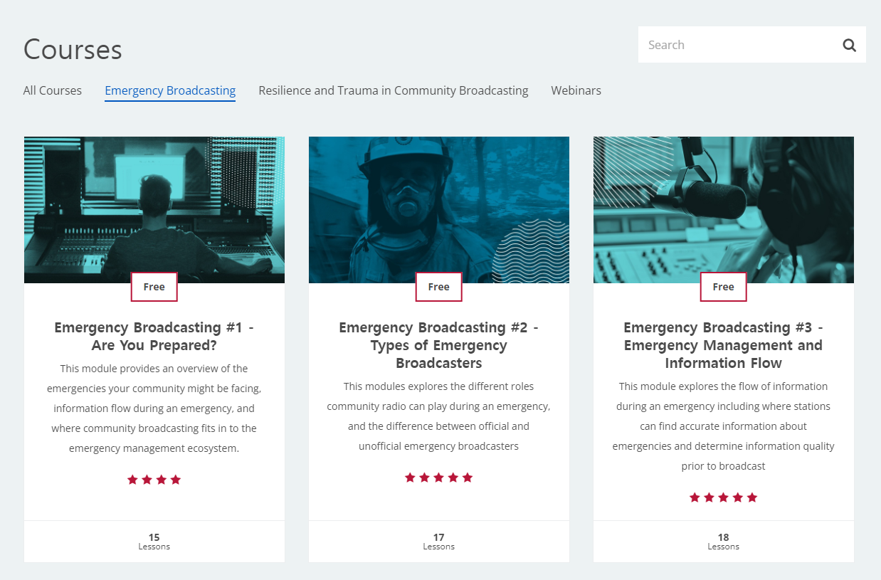CBAA의 교육 사이트인 CBAA learning은 이러한 대응에 관한 몫을 개별 방송국의 노력만으로 두지 않고 재난에 관한 온라인 교육 과정과 관련 자료를 제공하고 있다. 재난 방송을 위해 방송국의 입장에서 무엇을 감안해야 하는지를 비롯해, 방송 제작 전 알아야 할 사전 지식을 제공하고 있다.