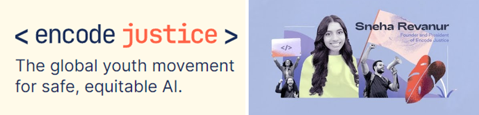 기술의 발전은 정의와 함께 계속 설계되고 인코딩해야 된다는 의미를 담고 있는 <인코드 저스티스>는 디지털 행동주의에 기반하여 2020년 7월 당시 15세였던 창립 대표 스네하 레바누르(Sneha Revaur)의 주도 하에 고등학생과 대학생 네트워크 조직을 목표로 설립되었다. 현재 미국 40개 주와 30개국에 걸쳐 1,000여명의 고등학생 및 대학생들이 구성원으로 참여하고 있다.