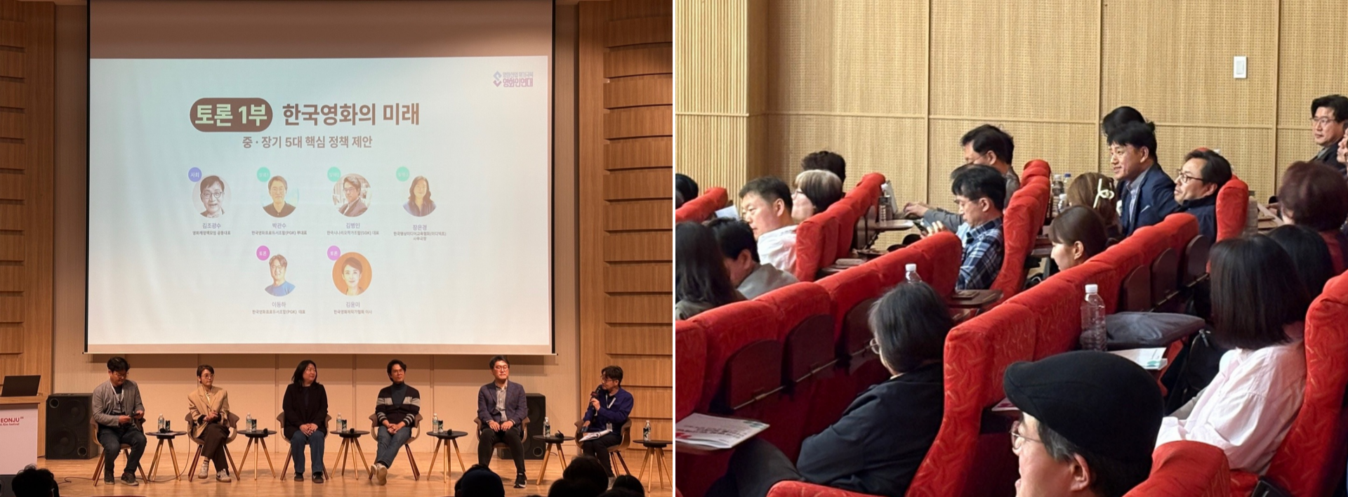 이처럼 총체적 위기 속에서 영화인들이 모여 새로운 질서를 다시 그려보자고 제안한 자리가 바로 [한국영화 위기해법, 머리를 맞대다 - 중·장기 5대 핵심 정책 제안] 영화인연대 포럼이다. 영화계 22개 주요 단체가 함께 준비하여 5월 1일 전주에서 진행된 이 포럼은 개별 현안을 넘어, 산업과 예술, 교육이 유기적으로 연결된 새로운 생태계를 상상하고 제안하기 위한 도약이었다. 단기 대응을 넘은 중장기 정책, 공공성과 지속 가능성을 아우르는 비전이 절실히 요구되는 지금, 이 포럼은 영화인들 스스로 다음 세대를 위한 정책 제안을 한다는 점에서 그 의미가 깊다.