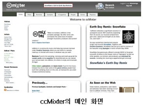 이 글의 애초 목적은 ccMixter( http://www.ccmixter.org )라는 인터넷 음악 사이트를 소개하는 것이었다. 하지만 사이트의 외연만을 소개하는 것을 넘어서 이 사이트가 가지고 있는 작지만 중요한 가능성에 대해 이야기하려다 보니, 그만 본론에 들어가기도 전에 이렇게 장황한 얘기를 늘어놓게 되어 버렸다. 읽는 이들에게 약간의 미안함을 느끼며, 이제부터는 ccMixter가 도대체 뭘 하는 사이트인지 살펴보도록 하자.