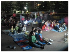 | 기획을 하면서 상상의 나래를 펼쳤었다. ‘그러니까 한가로운 놀이터에 스크린이 세워지고 프로젝터로 영화를 상영하면 놀던 아이들이 영화를 보러 몰려드는 거야. 중간에 재미없으면 놀이터에서 다시 놀면 되잖아. 그리고 못 보거나, 다시 보고 싶은 아이들을 위해서 1주일에 한 번 작은 도서관에서 상영하는 거야. 상영회 두 달을 한꺼번에 프로그래밍 해서 홍보물 제작하고 작은 도서관에 비치해 놓는 거지. 다음 상영작 정보도 함께 알려주면서. 어때. 좋지? 이거 지원 사업에 선정 안 되도 다음에 써먹을 수 있겠다.' 이런 상상과 함께 시작하니, 현실의 상황에 부딪혔을 때는 마음이 주저앉아버린다.입술이 덜덜 떨리고 다리가 후들후들, 비는 오는데 장비는 너무 무겁고 더구나 있는 장비 거의가 다 빌려온 건데, 조금이라도 비 안 맞게 하려고 뛰어다니지만, 어떻게 비를 몸으로 막을 수 있겠나. 상상의 나래에 비가 오는 상황은 없었다. 근데 현실에서는 비가 오더라. 더구나 ‘상영 시작하겠습니다!'라고 외친 그 직후에. 이게 ‘우리 동네 명랑극장' 첫 상영이다. 아파트는 미지의 공간이다. 그 곳에 어떤 사람이 어떤 모양 어떤 형태로 공동체를 이뤄 살고 있는지 알 수 없다. 어떤 사업이 가능할지 어떤 반응을 보일지도 알 수 없다. 그저 내 손에 쥐어진 건 장밋빛 환상을 품게 해준 성남문화재단 ‘풀장환상' 책과 처음부터 끝까지 해내야 한다는 절망과 ‘어떻게든 되겠지' 하는 마음 뿐 이었다. 그럼에도 불구하고 왜 ‘아파트'였냐고 묻는다면 ‘한 번도 살아본 적이 없어서'라고 대답하겠다. 그렇다. 모든 게 환상에서 시작한 거다. 1. 놀이터 옆 상영장 환상 중에서 실현된 건 ‘놀이터' 옆에서 상영하는 것이었다. 상영 중에 아이들은 흥미가 떨어지면 옆 놀이터에서 놀았으며 영화가 재미있어지면 다시 모여들었다. 우리 동네 명랑극장은 다른 상영회와 다른 모습들을 보게 된다. 가령, 상영장에서 돗자리 깔고 영화보는 아이에게 양복을 입고 서류가방을 든 아빠가 퇴근하다가 들러 머리를 한 번 쓰다듬어 주고 간다든지, 엄마 무릎 위에 앉은 아이가 영화 속 캐릭터에 무서워하면 엄마가 달래가며 영화를 함께 본다든가, 며칠 전에 이사 와서 친구가 없다는, 군인 아빠를 둔 형제도 없는 아이는 상영장에서 또래 친구들을 만날 수 있어 좋다 했다. 그렇지만 상영 하는 데 있어 가장 어려웠던 게 상영장을 정하는 것이었다. 아파트 내에 광장이 하나 있었지만 조형물과 정자, 나무가 빼곡하게 차 있어 상영을 하기에 적당치 않았다. 대안으로 제안 받은 것이 그 옆에 있는 배드민턴장이다. 넓고 평평하고 시야에 가리는 조형물도 없어서 상영장으로 마땅했다. 스크린의 위치 등 장비를 놓을 장소를 정해야 하는데 예산의 문제가 발생했다. 스크린을 받쳐주는 구조물을 세우자니 (일명 아시바) 전체 예산을 초과하고 기존의 장비 만을 활용하자니 상영장, 인원의 규모를 감당할 수 없을 듯 했다. 그래서 주변에 물어봤다. 이런 경우에는 어떡해야 하나요. ‘그네에 매다세요.' 라는 답이 돌아왔다. 아하! 그러면 되겠구나! 배드민턴장의 주변에는 그러기 힘들어서 결국 가로등에 매달기로 했다. 가능한 큰 스크린을 준비해 가로등에 매달아 4개월의 야외상영을 진행했다. 확실히 다양성 영화를 아이들과 함께 본다는 것은 어렵다. 일단 ‘짧고' ‘영화에 대한 정보가 제한'적이며 ‘상징'적이고 ‘함축'적이다. 또한 야외상영이니 영화가 ‘정적'이라면 아이들은 놀이터로 뛰어간다. 그래서 최대한 어린이의 시각에서 흥미롭게 느껴질 만한 영화를 선정하는데 어떤 반응을 보일 것인지 예측이 불가능하기 때문에 상영회 내내 덜덜 떤다. 그렇게 4번의 상영회를 진행하며 내린 결론은 ‘아이와 어른의 뇌구조는 다르기 때문에 이해한다는 것은 불가능하다' 라는 것이다. ![]() 그렇지만 다양성 영화를 상영하는 것과 많은 사람을 만족시키는 것 두 가지를 모두 놓치고 싶지 않았다. 고심 끝에 내놓은 것이 다양성 영화와 상업 영화를 교차로 상영하는 방법이다. 한 달에 다양성 영화를 상영하였으면 다음 달은 상업 영화를 상영하는 식이었다. ‘우리동네 명랑극장'을 통해 다양성 영화에 대해 알게 되고 익숙해지기를 바랐다. 첫 상영회에서는 비가 내렸고, 두 번째 상영회에서는 ‘이웃집 토토로'로 최다관객이 관람하였으며 세 번째 상영회에서는 환경애니메이션을 상영하며 퀴즈 이벤트를 시작하였다. 네 번째 상영회에서는 재즈 밴드 공연도 함께 보았다. 다섯 번째 상영회는 어른을 위한 다큐멘터리를 상영하였으며 여섯 번째 마지막 상영회에서는 교육을 통해 주부들이 직접 제작한 영상을 상영하며 ‘우리동네 명랑극장'을 마쳤다. 2. 입주자 대표회의와 부녀회장과의 떨리는 대면 상영회를 진행하며 처음 한 일은 아파트 물색이었다. 주변의 조언으로 - 사실 영시미 스탭이 사는 아파트 - 송천동 ‘뜨란채' 아파트를 소개받았다. 그 아파트 안에는 작은 도서관이 있었고 그곳을 중심으로 사람이 모이고 문화생활이 이뤄지고 있었다. 아파트 안에 이러한 공간 있다는 것 자체가 얼마나 아파트의 분위기를 형성하는 데 