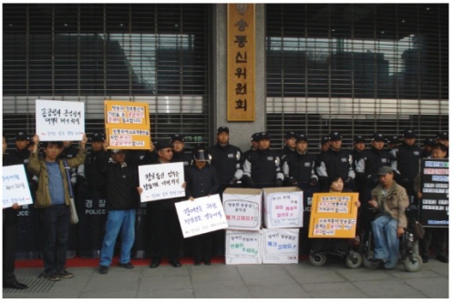 정부와 한나라당이 추진하는 언론관계법은 장애인 등 방송소외계층에게도 득보다는 실이 많을 수 있다. 방송이 경쟁의 장으로 내몰리면, 특정 재벌이나 언론이 독과점을 한다면 방송소외계층이 방송에 접근하고 참여할 수 있도록 보장한 제도적인 장치는 힘을 잃게 된다. 공영방송을 규제하기 위한 별도의 법률을 만든다 하더라도 공영방송의 범위는 제한적일 수밖에 없기 때문에 방송소외계층의 권리 축소는 막을 수 없다.