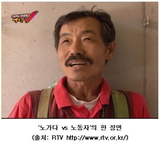 그리고 또, RTV 프로그램인 액션V가 3기가 되면서 작년 8월부터 지역별로 프로젝트를 진행을 했었어요. 지역 활동가들과 액션V의 활동가들이 결합해서, 지역별로 돌아가면서 한 달 방송분을 만들면 그것을 RTV를 통해서 방송 하면서 경험을 축적했던 거죠. 그런데 그 때 나왔던 것들을 보면 대부분 자기 지역의 미디어 활동가들이 하는 일들을 소개하고 평가하는 내용이었어요. 물론 그 자체로도 의미는 있었지만, 그럼에도 불구하고 우리가 이제 미디어를 통해서 우리 미디어 활동가들의 얘기가 아니라, 대중과의 접점을 찾아봐야 된다는 생각들을 하게 됐죠. 그래서 그때부터 ‘지역 속으로'라는 슬로건을 가지고, 지역의 미디어 활동가들이 자기 지역의 대중과 결합하면서, 그것을 전국채널인 RTV의 액션V라는 프로그램을 통해 연계하는 실험들을 해보자는 결의를 하게 됐어요. 이런 두 가지 조건들, 혹은 문제의식들 때문에 노가다 vs 노동자라는 프로젝트를 시작하게 됐어요.