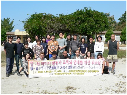 우리 지역에 일본 활동가들이 방문하다. 9월 30일 오후, 익산공공영상미디어센터 준비사무실이 떠들썩해졌다. 처음으로 외지에서 많은 손님들이 방문하여 익산공공영상미디어센터의 준비 과정과 활동에 대해 이야기를 나누는 시간이이기 때문이다. 손님맞이를 위해 어디선가 빌려온 책상과 의자에 쌓인 먼지를 닦아내느라 오전부터 분주했던 참이다. 이번에 오신 손님들은 더욱이 특별하다. 멀리 일본 각지에서 날아온 미디어활동가 여덟 분, 그리고 한국 미디어활동가 도영, 그리고 통역을 담당한 일본 연구자 하지메씨. 익산공공영상미디어센터에서는 모든 스태프가 총출동하여 손님맞이에 나섰다. 말이 잘 통하지 않으면 어떠하리오. 서로 짧은 영어와 따뜻한 눈빛을 교환하며 쉽진 않지만 흥미로운 소통이 시작되었다.서로 인사를 나누고 익산 센터의 운영 구조와 준비과정에 대한 짧은 브리핑을 한 후 이제까지 진행했던 교육 프로그램에 대한 소개를 이어나갔다. 손님들은 이틀 전부터 서울에서 시작된 빡빡한 일정을 소화한 데다 익산까지 이동한 여독으로 녹초가 되어있는 것 같긴 했지만, 각자 관심 있는 부분들에 대해서는 질문도 해가며 열의를 보여주었다. 특히 삿포로 지역에서 각자 미디어 활동을 하면서 지역 미디어센터를 준비하고 있는 활동가들은 지역 미디어센터로서의 정체성에 대해 궁금해 했고 신축될 익산 센터의 설계도에 큰 관심을 보였다. 어린이 미디어교육을 준비하고 있는 비디오 활동가 야마카와씨는 지난 4~6월 진행했던 다문화어린이미디어교육의 커리큘럼과 교육 참여자들의 표현방식에 대해서 특히 흥미로워했다. (야마카와씨 는 우리가 드린 교육결과물 DVD를 캠프 기간에 다 보고는 소감을 이야기해주기도 했다.) 통역을 사이에 두고 열댓 명이 대화를 나누기에는 분명 한계가 있었다. 하지만 이후 캠프에서 더 많은 이야기를 나눌 수 있을 것이라고 생각했기에 익산을 떠나는 손님들의 발걸음이나 배웅하는 익산센터 스태프들의 마음은 당시 꽤나 가벼웠다. 그러나... 같은 전북지역 생태문화 활력소에서 진행된 나흘간의 캠프에서 처음 기대했던 만큼의 이야기들이 오고갔는지에 대해서는, 글쎄... ACT!에 후기 비슷한 원고를 쓰고 있는 지금 나의 마음이 그 때 만큼 가볍지 않은 것만은 사실이다. 지금 가지고 있는 느낌은 어떤 설렘 또는 책임감, 무언가가 시작되는 지점을 목격하고 만들어나갈 때 감지되곤 했던 어렴풋한 희망의 무게이다.지역 미디어센터가 해외 지역 활동가들과 함께 고민할 수 있는 일 처음 이번 캠프에 대한 이야기를 들은 것은 이번 캠프의 실무책임자(가 되어버린) 도영에게서였다. 일본 미디어운동 활동가들이 한국에 방문하고, 캠프 장소를 부안으로 잡았으니 함께 하자는 제안이었는데, 정확히 뭘 어떻게 할지에 대해서는 구체적이지 않았던 것 같다. 다만 기존에 서울 지역을 중심으로 진행되던 국제연대활동과는 다르게 지역 활동가들도 참여하고 지역 활동 거점도 방문했으면 한다는 이야기가 인상적이었다. 일본에서 방문하는 활동가들도 지난 7월에 삿포로에서 있었던 G8 정상회담 반대 투쟁을 통해 네트워크된 일본 각 지역의 활동가들이라고 하니 정말 의미가 있겠다는 생각이 들었다. 당시 우리의 머릿속에 떠오른 생각은 두 가지 정도였다. 하나는 일본에서 우리 지역 (부안은 익산과 같은 전북 지역이다. 승용차로 달려 1시간 반 정도 걸려야 갈 수 있기는 하지만...)까지 손님이 오신다고 하니 잘 챙겨줘야지 하는 것(그래서 급하게 제안된 예산 지원 요청도 금방 수락하게 된 것이 아닐까.). 그리도 또 하나는 이번 캠프를 계기로 만나다 보면 내년쯤에는 함께 할 수 있는 사업을 구상할 수도 있겠다는 것. 특히, 참여적 미디어 활동에 대한 대중적 활동이 많지 않았던 익산 지역에서 미디어센터를 준비하면서 지역 미디어 운동을 고민하는 우리에게는 함께 활동할 수 있는 새로운 지역 사람들, 특히 젊은 층을 만나서 미디어 활동의 즐거움과 가능성을 소개하는 것이 주요한 과제 중 하나이다. 그래서 올해는 전북 지역 20대(대학생, 노동자, 일정한 직업이 없는 젊은이 등을 모두 포함하는)들과 함께 하는 미디어 캠프를 준비하고 있는데, 이런 활동을 일본 미디어운동 단위와 함께 할 수도 있지 않을까 싶었다. 자세히는 모르지만 일본에서도 참여적 미디어활동에 대한 대중적 인지도가 낮으며 참여할 기회도 많지 않고, 특히 젊은 층들의 참여가 저조하다는 것이 문제라는 이야기를 더러 들어왔기에, 비슷한 목표를 가지고 사업을 진행할 수 있지 않을까 하는 생각이었다. 다른 나라 젊은이들을 만날 수 있다는 장점이 더해지면 지역 젊은이들에게 한층 매력적으로 다가갈 수 있지 않겠는가. 막상 일본 활동가들과 만나서 이야기를 나누어 보니 삿포로 활동가들이 지역 미디어센터를 준비하고 있다는 소식이 있어 더욱 반가웠다. 바야흐로 내년에는 익산-삿포로 지역의 20대가 교류하면서 미디어를 활용해보는 20대 미디어 캠프를 준비할 수도 있지 않을까? 이번에 부안 캠프에서 만난 한-일 미디어 활동가들이 강사나 운영 스태프로 참여하게 된다면 