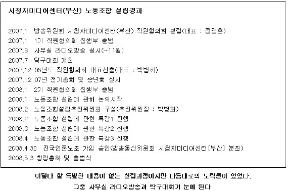 시청자미디어센터(부산) 노동조합 홈페이지 http://comcunion.org/