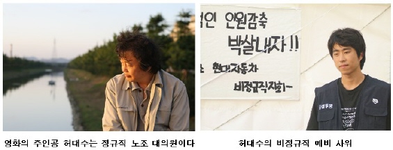 이번 작품은 처음부터 영화 세팅으로 하고 있고요. 또 젊은 비정규직 애가 주인공이에요. 나이 많고 권력 있는 정규직이 주인공인 허대수하고는 좀 다르죠. 허대수 같은 경우는 원래 현대자동차 노동조합에서 방송으로 내보낸 거라서 그 안에서만 보면 굉장히 아사무사하게 잘 된 작품일 수 있는데, 이게 이렇게 독립영화라고 전국 노동자들을 대상으로 해서 뛰쳐나와 보니 뭔가 부족한 게 되게 많았어요. 그러다 보니 욕을 너무 많이 먹어가지고 ‘아 다음에 또 해야 되나 이거 원' 거의 뭐 이 정도까지...