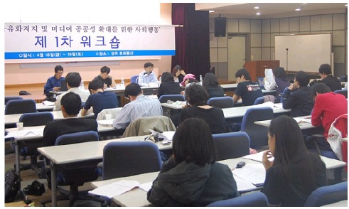 지난 4월 17~18일 이틀 동안 열린 미디어행동 워크숍은 이러한 과제의 답을 찾아 가려는 공동행동의 첫 걸음이다. 워크숍은 폭넓은 미디어운동 진영이 한 자리에 모여 무엇이 과연 미디어공공공인가를 함께 토론하고 ,이를 기반으로 연대의 재구성을 모색해보는 자리로 기획되었다. 워크숍에는 언론개혁운동 진영, 수용자주권단체, 언론현업단체, 그리고 독립미디어운동과 정보통신운동단체 등에서 60여 명의 미디어활동가들이 참가해 열띤 토론을 벌였다.
