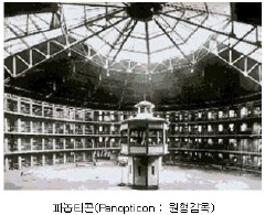 이러한 주장의 근거로 저자는 푸코의 권력이론과 ‘감시' 개념을 가져온다. 푸코가 『감시와 처벌』을 통해서 살펴보았듯이, 벤담의 파놉티콘(Panopticon : 원형감옥)은 근대사회 전체를 규정한 근대 규율권력의 상징이었고, ‘감시'기술의 발전과 ‘감시사회'의 등장은 근대 국가와 자본주의 사회의 발전이 서로 맞물리는 지점이었다. 감옥이나 학교 등을 통해 확산된 ‘감시'는 시선의 비대칭성과 시공간 분할, 육체에 대한 훈육 같은 권력 기술들을 통해 근대적 주체들을 만들어 냈고, 이들은 근대 산업사회가 필요로 하는 노동자들이 되었다. 저자는 이러한 원형감옥의 등장이후 ‘감시 공장'이 형성되고, 근대의 ‘감시 국가'가 점차 수많은 ‘정보'를 수집, 처리, 저장, 검색하는 과정으로 나아가고 있음을 보여준다.