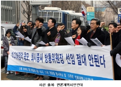 “최시중씨를 방통위 위원장으로 임명하는 것은 자멸의 길로 가는 것이다. (방송인총연합회)”