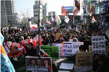 -세계행동의 날: "다른 세계를 향해 함께 투쟁하자! FTA, 빈곤, 전쟁, 차별 없는 세계를 위하여" 집회 후 청계천 광장까지 행진, 이랜드 뉴코아 투쟁승리 촛불문화제 참석