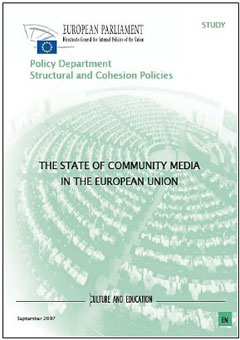 2007년 9월 유럽의회는 EU회원국의 공동체미디어 현황을 조사 연구한 보고서를 발간하였다. 현재 유럽 전역에는 다양한 공동체미디어 활동이 이루어지고 있다. 그러나 유럽의 공동체미디어 현황에 대한 정보는 매우 부족한 상황이다. 이 보고서의 목적은 EU의 공동체미디어 현황을 조사하고, 공동체미디어의 발전을 위해 필요한 정책들을 조사하기 위한 것이었다. 특히 EU 차원에서 공동체미디어를 지원하는 정책을 마련하기 위한 기초조사 성격을 갖는다.이 보고서는 공동체미디어를 다음과 같이 정의한다. "공동체미디어"는 "비영리적이며 공동체가 소유하거나, 공동체에 복무하는 미디어"이다. 공동체미디어는 "프로그램 제작과정에 공동체의 참여를 보장하며, 공동체 구성원들에 의해 운영되고 있다." 이러한 광의의 맥락에서 공동체미디어는 "자유 미디어(Free Media)", "시민 미디어(Civil Media)", "연대 미디어(Associative Media)", "개방 미디어(Open Media)" 등과 같이 각 나라에서 다른 용어로 불리워지는 다양한 미디어 활동들을 모두 포함하고 있다. 또한 공동체미디어는 인쇄매체뿐만 아니라 라디오, TV, 인터넷을 포함한다. 이 보고서에서는 EU 전역의 공동체미디어 활동을 평가하고 있는데, 각 나라마다 공동체미디어의 역할이 다르고 공동체 미디어의 수용자 규모와 참여자의 수에서도 현격한 차이를 보였다. 어떤 공동체미디어는 다른 공동체에도 잘 알려져 있었던 반면에 어떠한 경우는 극히 소규모로 운영되고 있었으며, 특정 공동체에만 방송서비스를 하는 경우도 있었다. 국가별로 보면 북서부 유럽에서 공동체미디어활동이 가장 활발하였으며, 신규 회원국들의 대부분은 공동체미디어가 법적으로 보장되어 있지 않으며, 활동도 미약한 편이었다. 이러한 활동 정도의 차이는 결국 공동체미디어에 대한 기본적인 제도화 수준뿐만 아니라 공동체미디어에 대한 대중적 인식과 밀접한 관련이 있음을 보여 준다. 보고서는 유럽의 공동체미디어의 법과 규제 현황 및 재정구조, 지원정책들도 비교분석하였다. 공동체미디어가 법적으로 보장되는 것은 공동체미디어 지속가능한 발전에 있어서 매우 중요한 요소이다. 소수의 방송국들이 여전히 해적방송의 형태로 운영되고 있지만, 대부분의 공동체미디어들은 다양한 형태의 법적 허가를 받고 운영되고 있다. 공동체미디어는 국가의 공적 기금뿐만 아니라 광고와 같은 상업적 재원을 포함하여 다양한 재원형태를 보이고 있다. 대부분의 공동체미디어가 공동체 구성원들의 자원 활동에 의존하고 있는데, 공동체미디어를 둘러싼 다양한 경제, 사회적 조건은 공동체미디어의 평균 재정 규모를 측정하기 어렵게 한다. 또한 공동체미디어와 관련한 공공 정책들이 각 나라마다 다르기 때문에 어떤 나라는 공동체미디어가 안정적이고 제도적 형태로 정착할 수 있도록 공적 지원을 장려하고 있는 반면에, 법적으로 공동체미디어를 보장하고 있지만 어떠한 공적지원도 하지 않는 국가도 있다.그러나 여전히 공동체미디어에 대한 관련 규제기관의 이해도는 매우 낮은 편이다. EU 차원에서 공동체미디어에 대한 조항들을 포함하고 있지만, 해당 국가의 정책결정자들이 공동체미디어의 요구사항들을 인식하게 만드는 것은 쉽지 않은 일이다. 공동체미디어에 대한 지원과 규제 등 충분한 정책들을 수립하고 있는 나라는 프랑스, 영국, 아일랜드, 헝가리 등 소수에 불과하다. 보고서는 앞으로 있을 '디지털 전환'과 같은 중요한 국면이 공동체미디어에 미칠 영향에 대해서도 언급하고 있다. 디지털 기술은 공동체미디어의 도전일 뿐만 아니라 기회이다. 인터넷을 기반으로 한 공동체 미디어는 혁신적 방법으로 새로운 참여자들을 모을 수 있을 뿐만 아니라 새로운 수용자들로 확장될 수 있는 가능성을 보여주고 있다. 또한 디지털 기술은 공동체미디어가 컨텐츠를 배급하고 교환하는 능력뿐만 아니라 새로운 조직모델을 도입할 수 있게 한다. 더욱이 향후에 디지털방송으로 전환될 때에 신규 공동체미디어 서비스에 이용될 수 있는 주파수를 개방하도록 요구하는 것은 매우 중요한 일이다. 그러나 대부분의 국가의 디지털 전환 정책은 공동체 미디어를 고려하고 있지 않다는 것이 문제이다. 디지털 전환(디지털방송 포함)은 공동체미디어 조직들이 감당하기에는 너무 높은 초기 비용을 필요로 한다. 결국 디지털 방송 표준은 공동체미디어와 같은 소규모 미디어 조직들의 요구를 반영하지 못하며, 미래의 방송 플랫폼에서 공동체 미디어 섹터를 배제시킬 지도 모른다는 위기감이 점차 커지고 있다. 이 연구 조사 결과에서도 디지털 전환 정책에서 공동체미디어의 의무 전송을 규정하고 있는 국가는 거의 없었다. 국가들마다 공동체미디어의 현황이 차이가 있었지만, EU 전역에서 공동체미디어가 발전하고 있음을 확인할 수 있다. 특히 많은 국가들에서 공동체미디어 조직들이 연대하여 공동체미디어의 요구와 사회적 지위를 강화하기 위한 집단적 실천들을 기획하고 있는 것은 고무적인 일이다. 이 보고서 후반부에는 공동체미디어의 사회적 가치가 EU의 정책적 목표와 깊게 연관되어 있는 근거