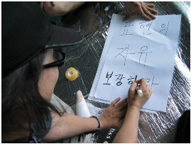 다큐멘터리를 시작한지 어느 덧 9년째가 되고 있다. 비디오카메라를 들고 사람들이 살아가는 모습을 처음으로 담기 시작했던 것은 1998년 한국의 경제위기가 시작되던 때였다. 카메라를 들고 처음으로 내가 담은 세상은 무엇이었을까? 어느 날 이런 생각이 들어서 테이프를 찾아보니, 우리 동네 시장골목이었다. 김장시장이 시작되고 있었고, 배추와 무를 쌓아놓고 추위에 웅크리고 앉아 있는 할머니, 불 쬐는 짐꾼들, 그들의 빨갛게 언 얼굴들에 새겨진 깊은 주름들, 바닥에 짓이겨진 배춧잎들... 내가 비디오카메라로 보았던 최초의 세상풍경. 그것이 고스란히 첫 테이프에 남겨져있다. 그렇게 나는 비디오카메라를 먼저 들었고, 찍힌 사람들에게 그들의 모습을 보여주고 싶어서 편집을 해서 함께 보기 시작했다. 그것은 서로에게 즐거운 일이었다. 함께 보고 웃으며 이야기하는 것. 그런 것들이 노동현장으로 이어지면서 그들의 투쟁을 기록하고, 남기고, 편집을 통해서 정리해서 함께 보는 일이 되었다. 그렇게 몇 년이 흘러갔다. 당시 기록했던 촬영본들은 쌓여갔고 시간이 흘러갈수록 소중한 자료가 되어갔다. 당시 그들의 생존과 노동기본권을 위한 사회적 행동들, 외침들이 서툴게 기록되긴 했지만, 아주 중요하게 인식되기 시작했다. 나는 왜 카메라를 세상을 향해서 들고 있는가, 나는 무엇을 보고 있는가, 말하고 있는가, 카메라를 통해서 무엇을 어떻게 소통하고 싶어하는가...에 대한 고민들이 시작되었다. 또한 다큐멘터리는 무엇인가? 저널리즘이면서 영화이기도 한, 그래서 지식으로 알아야할 것도 많지만, 현장에서 생생하게 배우는 것도 많아서 흥미롭고도 어려운 작업이라는 생각이 들었고, 좀 더 진지하고 치열하게 카메라를 들어야한다고 생각했다. 그러나 현실적으로 부딪히고 극복해나가야 할 많은 문제들이 산재해 있었다. 나는 좀 더 적극적으로 카메라를 통해 사람들과 대화하고 싶었고, 말걸기를 적극적으로 시도했다. 당신은 왜 비정규직이 되었나? 왜 시위하는가? 왜 해고시켰는가? 법은 어떻게 해석하는가? 그것은 공평한가? 공평하지 않다면 그것은 누가 누구를 위해서 만들었는가? 많은 인터뷰와 행동을 통해서 알게 된 것은 진실에 접근하는 것은 어렵고, 진실임을 판단해 내는 것도 쉽지 않은 일이라는 것이다. 이들 가운데 가장 진솔하게 자신들의 이야기를 하는 이들은 역시 어려운 상황에서 더 이상 잃을 것도 없고 더 이상 물러설 곳도 없는데, 게다가 그들의 목소리조차 중앙언론을 통해서 외면당하고 심지어 왜곡되어지는 사람들이었다.다큐멘터리는 사회 정치적인 문제들에 접근을 해서 자신의 생각을 말할 수도 있다. 물론 삶의 철학을 이야기하고, 시를 이야기하며 자연과 우주의 신비를 이야기할 수도 있다. 무엇을 이야기하든, 현실을 기반으로 하는 것이기 때문에 이를 위한 전문적이고도 특별한 접근이 필요하다. 이런 의미에서 다큐멘터리는 저널리즘이기도 하다. 나는 요즈음 이랜드 노동자들의 투쟁을 기록하고 있다. 올 초 여성노동에 대한 기획을 위해서 취재를 하던 중 이랜드 여성노동자들을 만났다. 적게는 몇 개월에서 많게는 4,5년을 계약직으로 일하던 그녀들이 계약만료 시점에서 자동적으로 재계약되던 것이, 이번 해 7월 1일 비정규직 법안 시행을 앞두고 갑자기 계약해지통보를 받거나, 심지어 근로계약서에 계약기간이 위조되어 해고당하는 일이 벌어졌다. 그녀들의 고용에 대한 불안감과 용역업체로의 전환은 생존권의 위협으로 다가왔고 순식간에 총파업의 불길을 당겼다. 이랜드 회사의 뉴코아 노조와의 불성실한 교섭, 외주화 발표와 임금동결, 심지어 이랜드 일반노조에 대한 불인정 등으로 총파업은 점거농성으로까지 이어졌다. 이 다큐멘터리는 이 사건을 기록하면서 이 사회의 여성과 여성노동의 문제를 다뤄보고자 했고, 집중적으로 촬영에 들어가면서 점거농성장에도 함께 하게 되었다. 초기에는 그녀들의 투쟁현장을 기록하는 카메라들은 우리 팀과 진보적 미디어뿐이었지만, 점거농성이 계속되면서 그녀들의 문제는 사회적인 이슈로 크게 떠올랐고 많은 언론들이 집중되기 시작했다. 월드컵 홈에버 상암점 점거농성이 10여일을 넘기면서 농성장에는 상주하는 기자들이 늘어났고, 3사 공중파는 중계방송 차까지 동원하면서 경쟁적인 취재에 열을 올렸다. 이랜드 사측과의 교섭이 시작될 무렵에는 교섭 장소와 농성장에는 어디서 나타났는지 수많은 기자들이 몰려들었고, 나는 태어나서 그렇게 많은 기자들은 처음 본 것 같았다. 이들 중에는 경찰이나 사측의 프락치로 의심되는 자들도 보였지만 나로서는 어떤 조치를 내릴 수없는 입장인데다가, 더군다나 그들이 완장처럼 차고 다니는 프레스증 하나 없는 처지였으니 점점 그들의 취재영역 밖으로 밀려나고 있었다. 결국 공권력에 의해서 농성장의 통제가 시작되었고, 기자들만 농성장으로 들어갈 수 있다는 통보를 받았다. 이 상황을 지휘 통제하는 곳은 서울시 경찰청이었으며 그들이 말하는 기자들은 한국방송기자협회와 한국신문기자협회, 인터넷기자협회 소속의 기자들로 기자증을 소지한 자들