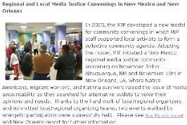 또 다른 예를 얘기하자면, 뉴올리언스의 카트리나 폭풍 이후 전멸된 상태에서 저소득층의 대부분을 차지하는 흑인들은 자신들의 목소리를 낼 수 있는 공간이 없었다. 폭풍 이후 지금 뉴올리언스는 모든 것이 새롭게 재개발하는 시기에 있다. 이제 때가 되었다는 흑인들의 인식으로 자신들의 방송국을 가지고 자신들의 목소리를 낼 수 있는 그런 공간을 만들어보자고 생각하고 있다. 그래서 지역회의를 통하여 라디오 방송국을 설립하는 것을 추진 중이다.