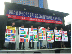 따라서 우리는 얼마 전 발효된 - 하지만 한국의 국회비준은 아직 이루어지지 않은 - 유네스코의 <문화적 표현의 다양성 보호와 증진을 위한 협약>(이하 <문화다양성협약>)을 이해할 때에도 이러한 실천적 관점을 견지할 필요가 있다. 다시 말해, <문화다양성협약>이 형식적인 존재감‘만’ 가지지 않기 위해서는 자본의 세계화로 인해 왜곡되는 ‘문화다양성’을 둘러싼 현실의 갈등과 싸움의 장으로 <문화다양성협약>을 끌어내는 기획과 실천이 준비되어야 한다는 뜻이다. 유네스코 <문화다양성협약> 체결을 전후로 한 실천과제를 고민하기 위해 먼저 <문화다양성협약> 체결 과정에서의 부침을 살펴보자.