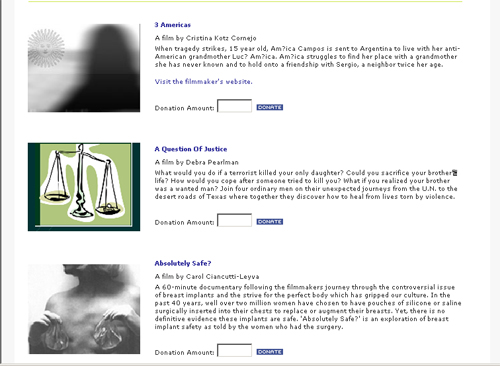 | WMM의 주요 활동 영역 중 하나는 제작지원이다. 제작지원 제도는 여성독립제작자를 발굴하고 지원하기 위하여 1998년부터 시행되고 있는데, 이는 주로 재정적인 지원에 초점을 맞추고 있으며, 크게 보면 재정 후원과 워크숍으로 나뉜다. 재정 후원이란, 글자 그대로, 특정 미디어 프로젝트에 대한 재정 지원 프로그램이다. 세금 감면 등을 위해 기부를 하려고 하는 재단이나 사업자들이 개인 제작자를 지원하기에는 쉽지 않은 구조이지만, 큰 비영리 조직을 통해서라면 가능할 수 있을 것이다. 이러한 조건을 살려, WMM은 개별 프로젝트-제작자에 대한 비영리 면세 상부 단체로 기능하면서 기부자들을 조직한다. 기부자들에게 기부금을 받고 다시 제작자들에게 분배하는 과정은 양자의 동의 속에서 합법적인 절차에 따라 이루어진다, (기부자는 실질적으로 작품 제작을 지원하지만, 형식적으로는 비영리 단체인 WMM을 거침으로서 법적으로 세금 감면이 되는 것이다. 연말정산 때 시민사회단체나 정당에 대한 기부금에 따라 세금 환급이 이루어지는 것을 생각해보면 훨신 이해가 쉬울 것이다.) 이러한 지원을 통해 제작된 작품에 대한 모든 권리는 물론 제작자가 갖게 된다. 이러한 과정을 통해 제작자들은 이전까지는 불가능했던 곳들로부터 지원을 받을 수 있게 되며, 혼자서 투자-제작-연출 등 일인 다역을 해야만 하는 힘겨운 상황에서 벗어날 수 있게 되는 것이다. 한편, WMM은 개인들이 직접 쉽게 기부할 수 있는 방법으로 웹사이트를 통해 개별 후원 이 가능하도록 하고 있다. (http://www.wmm.com/filmmakers/sponsored_projects.shtml) 웹사이트에 접속한 개인들은 WMM이 미리 선정해둔 작품들을 검토하여 일정 금액을 온라인으로 결재할 수 있다. 작품에 대한 설명이라고는 스틸 사진 한 장과 불과 몇 줄의 소개( 반 정도는 제작자의 웹사이트로 가는 링크가 제공되기도 하지만...) 뿐이지만, 기부문화가 발전되어있다는 미국에서는 꽤 큰 효과를 노릴 수 있을지도 모르겠다. WMM은 150개가 넘은 영화와 비디오를 후원해왔다고 한다. 그 중에는 ‘줄리 대쉬’의 [먼지의 딸들]이나 ‘킴 피어스’의 [소년은 울지 않는다]처럼 주류에서도 비평과 흥행에서 성공을 거둔 작품들도 있다는 것은 WMM가 즐겨 이야기하는 자랑거리이다.