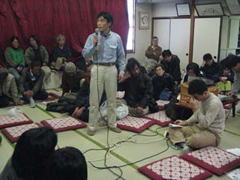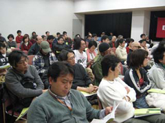| <노가다>를 완성하면, 일본에서 첫 상영은 반드시 오사카 가마가사키 노동자들과 함께 하고 싶다고 생각했다. 가마가사키는 건설일용노동자들의 거리라고 불린다. 새벽이면 건설일용노동자들이 하루의 일거리를 찾기 위해 모여드는 곳이다. 이곳에서 촬영이 진행되었고, <노가다>는 일본 가마가사키 노동자들의 과거와 현재의 이야기를 담고 있다. 일본 상영을 위해서 일본어 나레이션과 자막이 완성되었고, 상영회가 준비되었다. 나는 정해진 날짜에 출국을 해서 준비된 스케줄대로 상영회를 돌았다. 오사카, 도쿄, 요코하마, 나고야, 교토, 오사카... 십일 동안의 상영회가 끝났고, 상영회에 온 관객은 현장노동자와 일반관객을 모두 합해서 약 900명 정도가 되었다. 짧은 시간에 준비된 상영회 였지만, 성공적이었다고 말했다. 하지만 한국으로 돌아온 나는 거의 십일 동안 심한 우울증에 시달려야했다. 상영회 기간 동안 내가 보고 느낀 것은 일본 사회의 우울과 불안이었다. 거리에서, 지하철 안에서, 상영회장 안에서 온통 어둡고 불안정한 눈빛으로 내일의 희망은 없다고 말하는 사람들. 경제대국이라고 불리는 일본에서 만난 대부분의 사람들은 높은 생활비용으로 항상 절약하며 여유가 없고 가난해 보였다. 90년대 거품경제가 무너진 이후로 계속 하락 하던 경기가 이제 조금 회복되고 있다고 하지만, 유연화된 노동시장으로 많은 노동자들이 파견, 일용직, 소위 프리타라고 불리면서 하루하루 불안정한 삶을 살고 있다. 개별화된 노동자들, 개별화되어 철저하게 통제되고 있는 듯 보이는 인간들. 너무 예민해 보여서 함부로 떠들고 말해서는 안되는 것처럼 보이는 긴장감. <노가다>촬영을 일본에서 코디네이터 해준 분은 가마가사키에서 30여년을 건설일용노조에서 활동을 해오신 분이었다. 그분이 오사카지부로 올라가셨고, 일년이 지나면서 심한 우울증과 정신병으로 고생한다는 소리를 들었다. 그분과 함께 밤낮으로 통역을 도왔던 S. 그녀도 같은 노조사무실에서 일하는데, 역시 심한 정신적인 병으로 병가와 휴가를 반복하고 있었다. <노가다> 작업을 열심히 도왔던 그들의 마음은 오로지 하나였다. 일본사회에서 거의 아무도 관심을 갖지 않는 가마가사키에 관심을 갖고 찾아 온 한국인에게 어떻게든 도움이 되고 싶어했고, 좋은 작품을 만들어 일본사회에서 널리 상영되게 하고 싶다는 그 마음으로 열심히 합세해서 작업을 도왔다고 나는 생각한다. 그런데 이들이 모두 노조에서 일하면서 심한 우울증으로 고생하고 있다는 사실이 잘 믿기지가 않았다. 그래도 일할 정도면 심하지 않을 거라고 생각했다. 상영회를 준비하는 주체는 현장상영을 중심으로 하려는 목적 때문에, 일용전협(전국일용노동조합 협의회)과 가마가사키 파트롤회(가마가사키 노동자를 지원하는 활동가 그룹)의 젊은 활동가들이었다. 이들은 일본의 일용노숙노동자들과 함께 열심히 활동하거나 실제 자신들이 일용노숙노동자였다. 가마가사키에서 첫 상영의 준비는 이들의 자발적인 활동으로 준비되었다. 새벽, 요세바에서 선전전을 하고 상영회전까지 삐라를 뿌리면서 사람들을 부르고, 각자 맡은 기자재를 조달해서 설치했다. 수십 년 동안 서로 사이가 좋지 않던 각 조직의 사람들이 관심을 가지고 모였다. 어두워지면서 상영회가 시작되었고, 많은 가마가사키 노동자들과 찬바람을 맞으며 함께 관람을 했다.